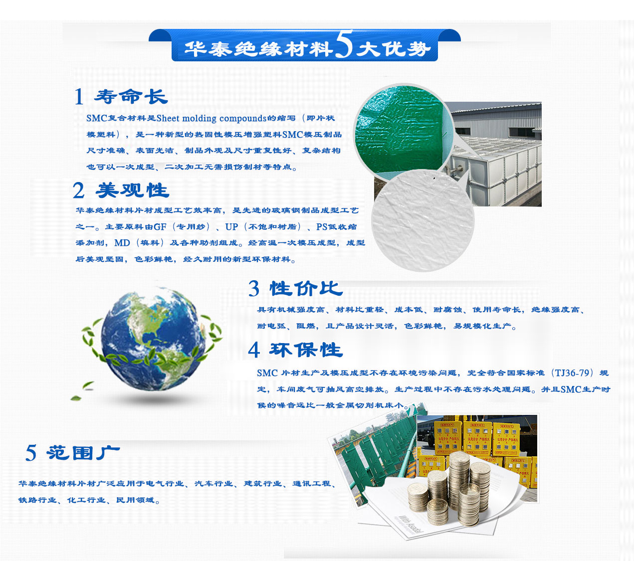 萊州市華泰絕緣材料有限公司坐落于膠東半島月季之鄉(xiāng)的山東省萊州市。是一家從事材料研發(fā)、生產(chǎn),壓制成型,SMC/BMC自動(dòng)設(shè)備及SMC模具制作的專業(yè)生產(chǎn)型企業(yè)。公司擁有全套的SMC生產(chǎn)線設(shè)備,雄厚的技術(shù)力量,豐富的生產(chǎn)工藝,優(yōu)秀的專業(yè)人才,為客戶提供一體化解決方案。